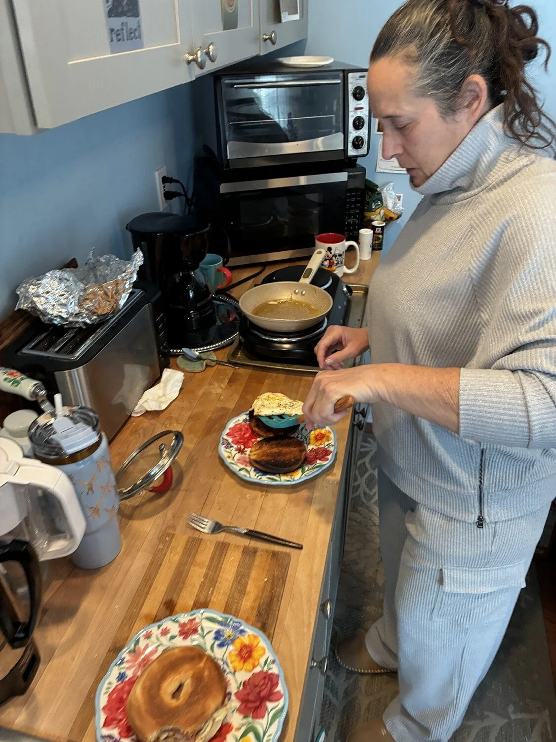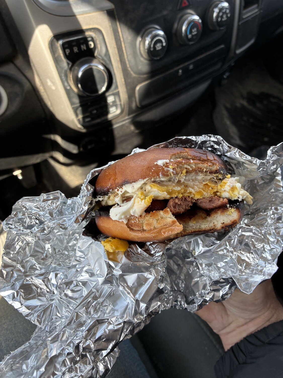I was tasked with taking care of Jill's unit. With frozen pipes sometimes identifying exactly where to focus your attention can be a problem. Absent a large heating element that can heat up a big space quickly, the solution is often taking a heat gun along the frozen pipe, slowly thawing the pipe until the water flows freely. It's a time consuming job, always cold, never comfortable. The problem at Jill's home was mercifully simple. The poor baseboard in the insulated box under the house tapped all the way out. Instead of a toasty spot for the water to enter and the waste to exit, the box was simply the same temperature as the surrounding air. A new baseboard with a larger breaker was needed. The fix required back and forth trips from under the house, to welcome reprieves inside Jill's unit, to back under the house. Each time I went inside, Jill had a cup of coffee topped off for me. On my final trip inside the house to flip the breaker and return power to the new and improved baseboard, I was met with the distinctive sizzle and mouth watering scent of a fried egg. Jill made it very clear I was leaving with a breakfast sandwich. So while I hung out with Jack, Jill put the final touches on what may have been the best sandwich I've ever had in my life - bar none. And soon after, the water was running again at Jill's unit.